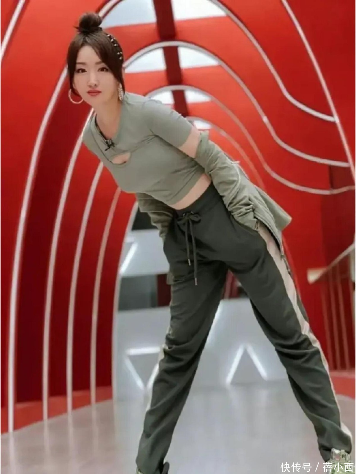 运动的时候,杨钰莹选了一件灰绿色的短款露脐上衣,胸前还有镂空设计,时尚感十足。